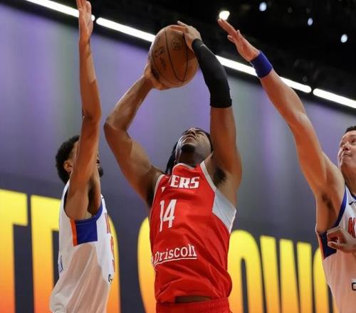 又打出了一场灾难表现,前76人侧翼在火箭二队都有些打不明白