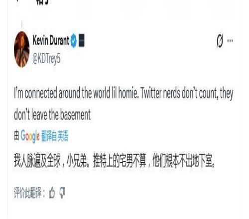 杜兰特在线怼黑粉:我的人脉遍及全球,宅男们只能窝在地下室