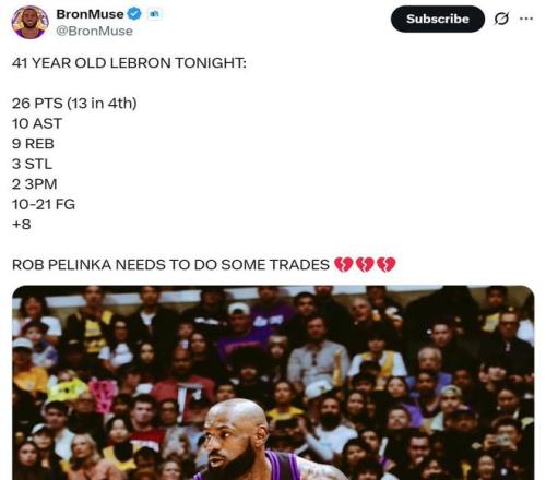 赛后湖媒BronMuse直言:“佩林卡需要做一些交易了。”