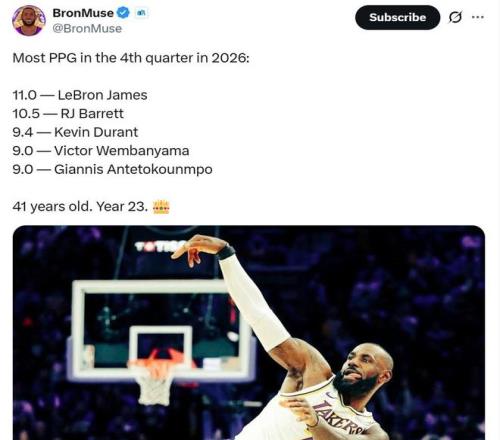 无奈的是岁月不饶人,哪怕詹姆斯能够调整体能分配,将更多能量留到第四节冲刺,但41岁的他也无法保证一整节都能在攻防两端持续交出高质量表现。