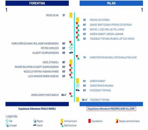 米兰在意甲第20轮客场1-1战平佛罗伦萨,赛后的裁判报告显示主教练阿莱格里在这场比赛当中还被裁判驱逐出场。